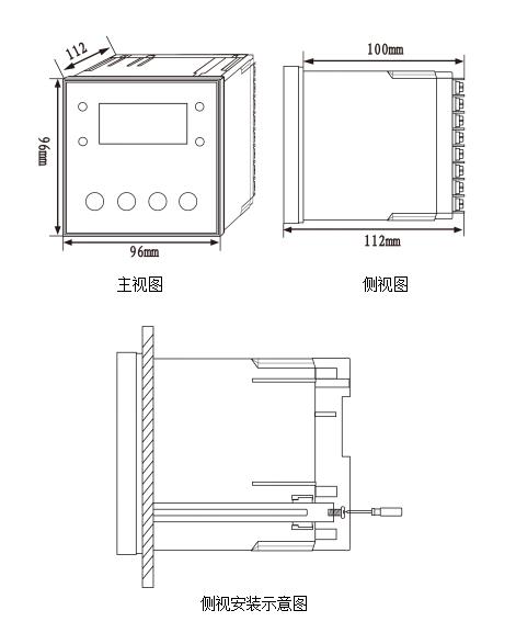 在任何一塊厚度為1/16英寸(1.5mm)至3/8英寸(9.5mm)的面板上,開出一個92mm×92mm的矩形切口。將儀器后部從開口正面插入,后部鎖緊即可。