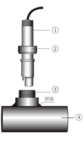 將安裝管穿過套管,根據(jù)現(xiàn)場測量深度,通過兩個鎖定螺釘將套管固定在安裝管上的適當(dāng)位置;