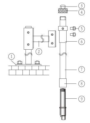 注意:在連接電極與連接管時,請旋轉(zhuǎn)連接管而不要旋轉(zhuǎn)電極,否則電極的電纜有可能被損壞,同樣在連接安裝管與連接管時請旋轉(zhuǎn)安裝管。