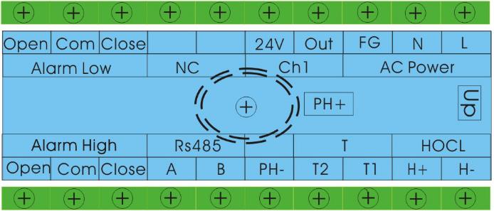 儀表的接線端子如下圖,各端子的意義如下表6-1說明: